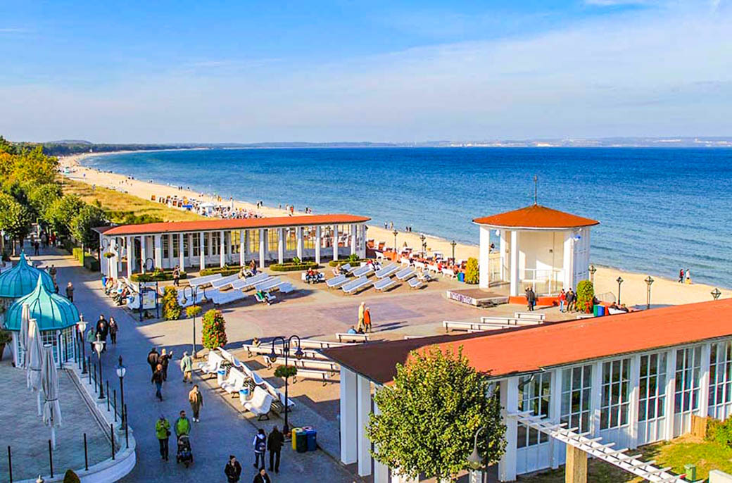 Der Kurplatz im Ostseebad Binz vor der Strandkulisse der Prorer Wiek.