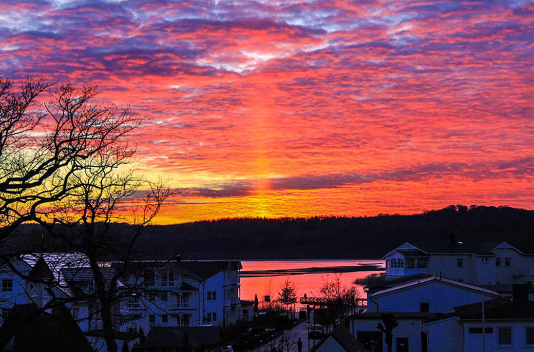 Sonnenuntergang über dem Schmachter See. Ostseebad Binz.