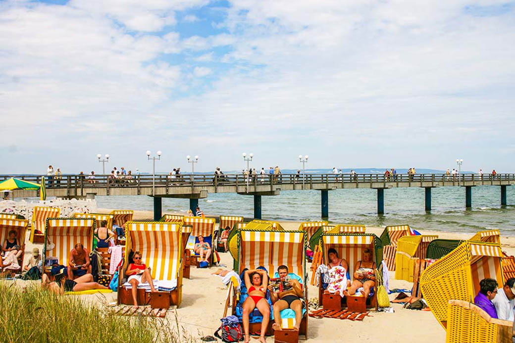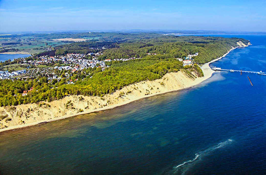 Rundflug: Die Granitz zwischen Binz und Sellin. Vorn Sellin mit der Seebrücke.