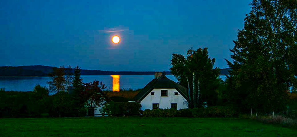 Vollmond über dem kleinen Jasmunder Bodden bei Buschvitz.