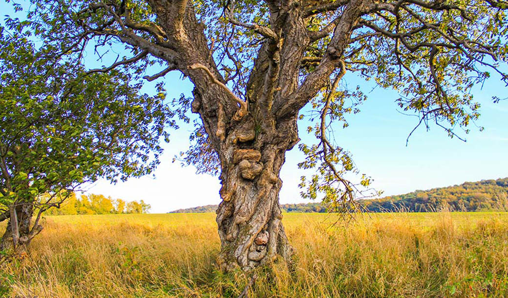 Auf dem Weg von Stedar zur Puhlitz treffen wir auf diesen verwachsenen Kirschbaum.