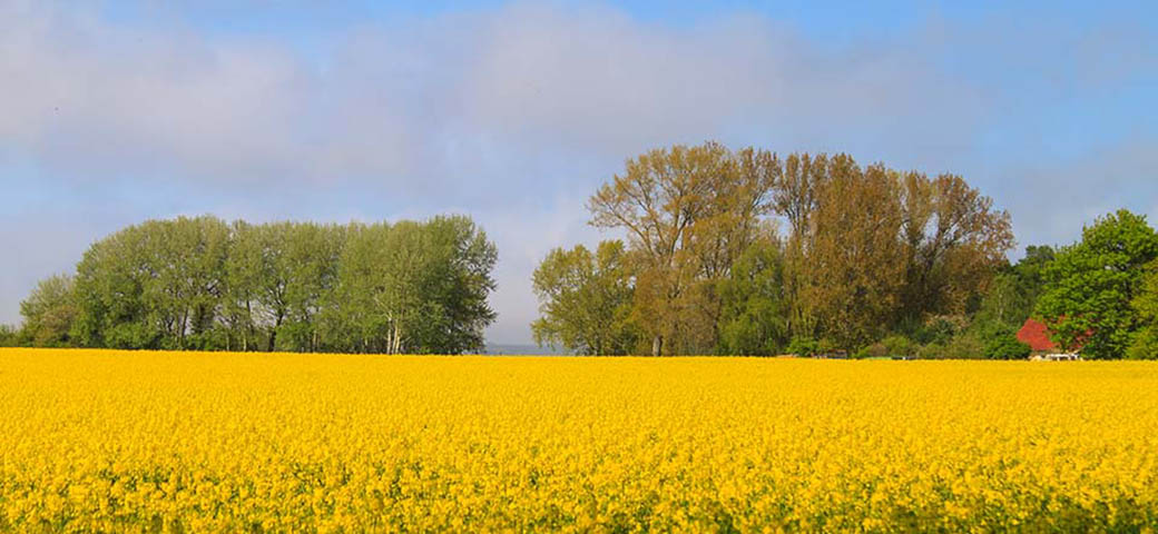 Blühendes Rapsfeld in Volsvitz bei Gingst.