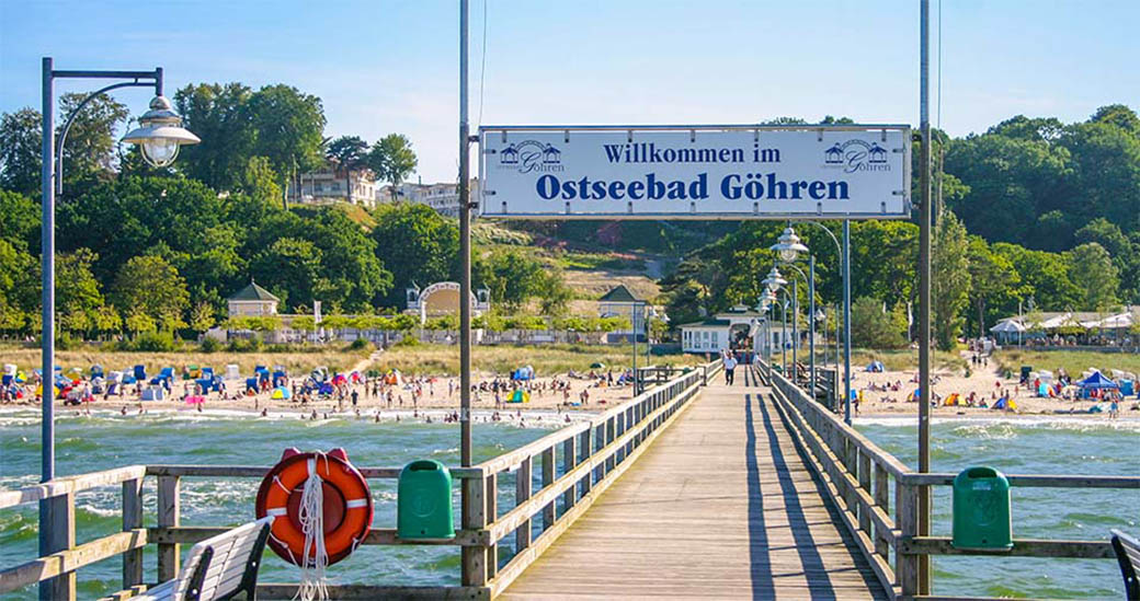 Willkommens-gruß an der Seebrücke im Ostseebad Göhren.