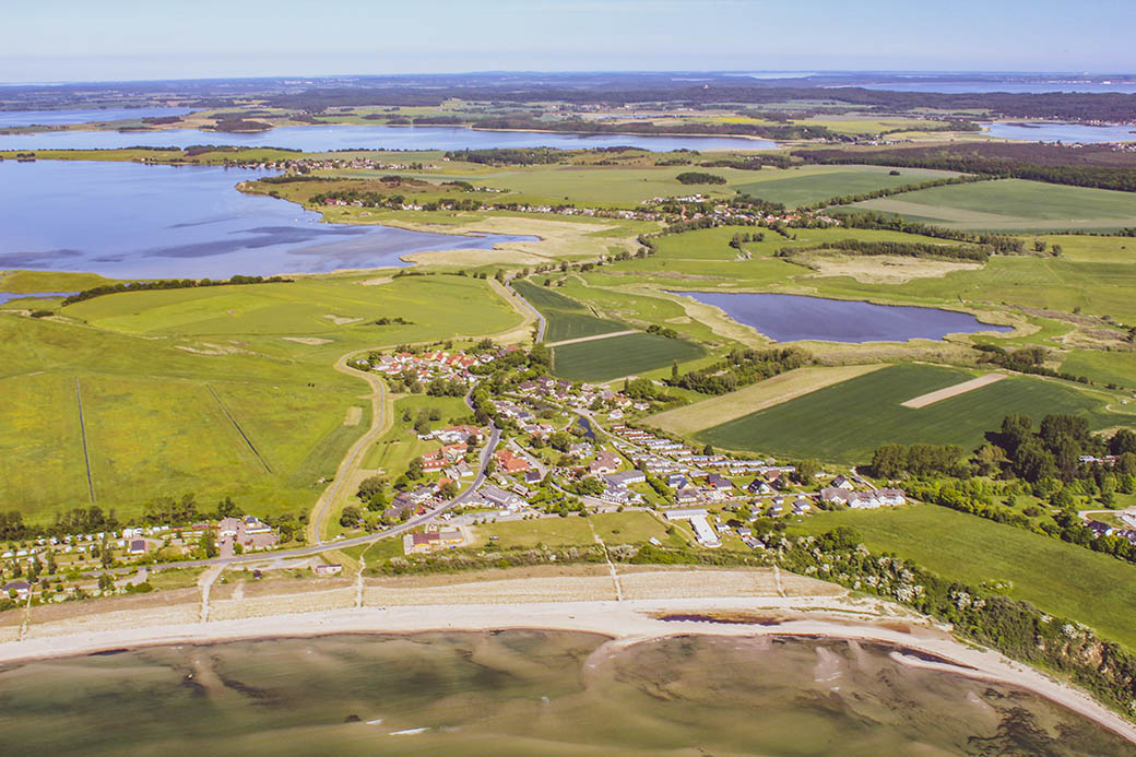 Luftaufnahme von Groß- und Klein Zicker mit dem Südperd in Thießow.