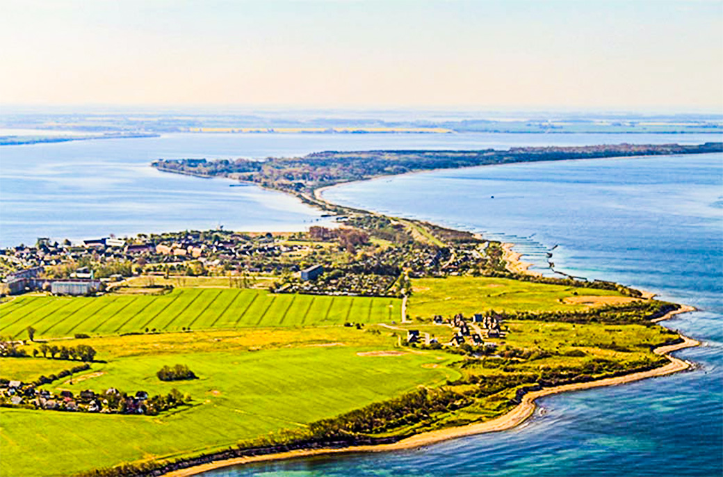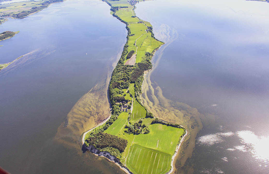 Von Alt Reddevitz zieht sich das Reddezitzer Höft weit in den Rügischen Bodden Richtung Insel Vilm.