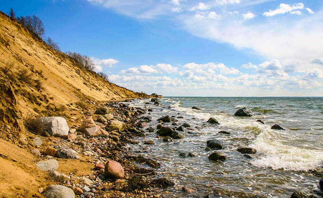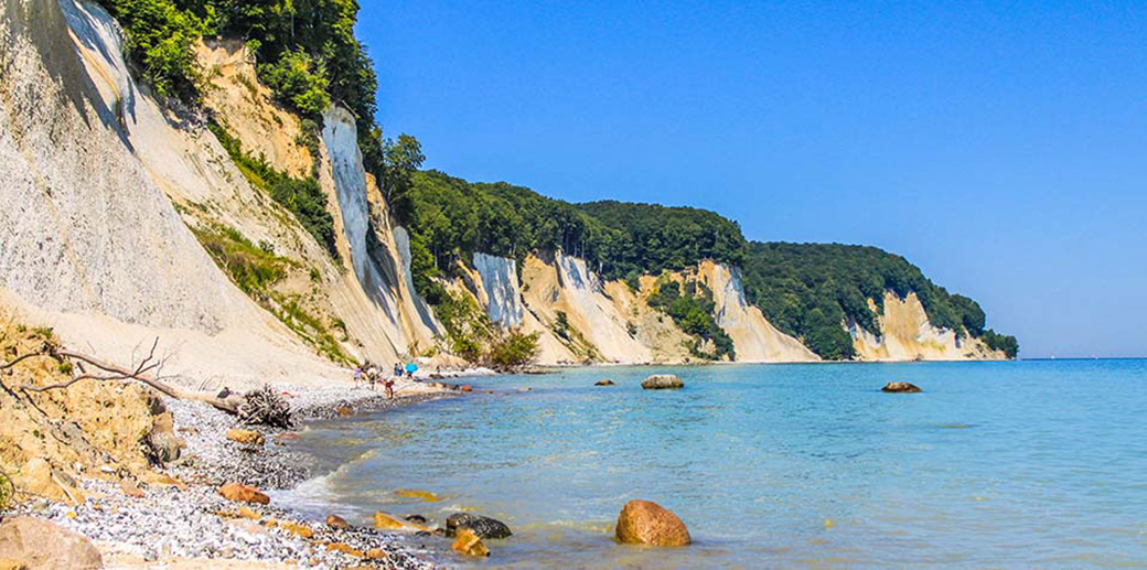 Nationalpark Jasmund: Mehrere Abbrüche an der Kreideküste versperren den Strand.