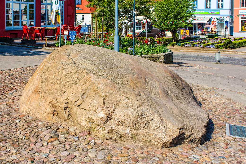Der große Findling am Markt wurde erst um 2000 bei Bauarbeiten entdeckt und frei gelegt.