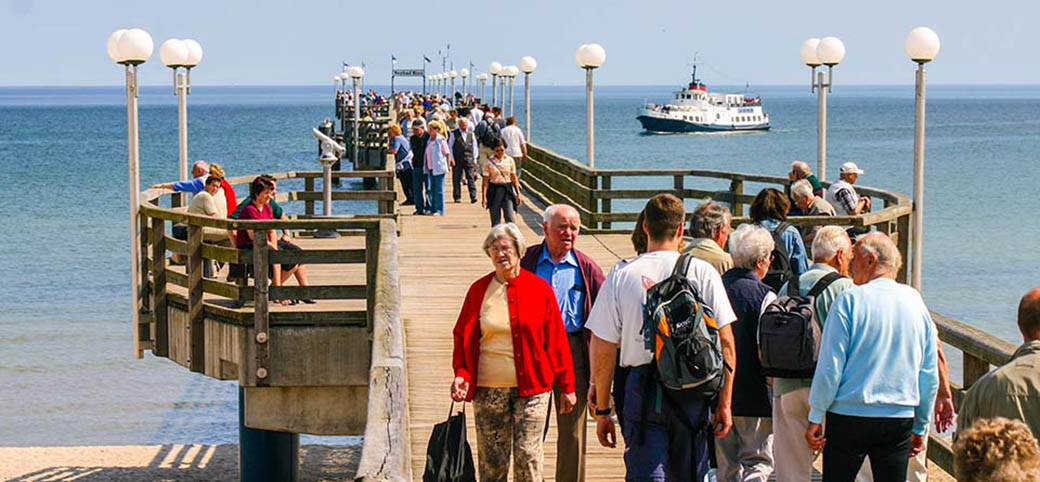 Reger Besuch auf der Seebrücke im Ostseebad Binz.
