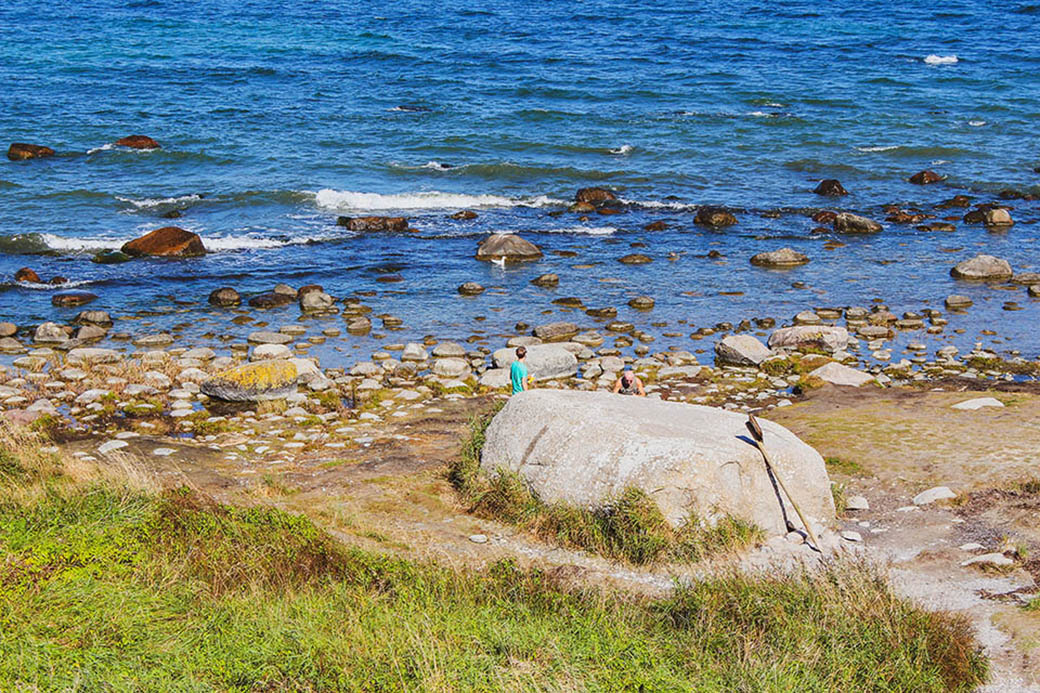 Findling in der Tromper Wiek, Ostsee, mit Blick auf Kap Arkona.