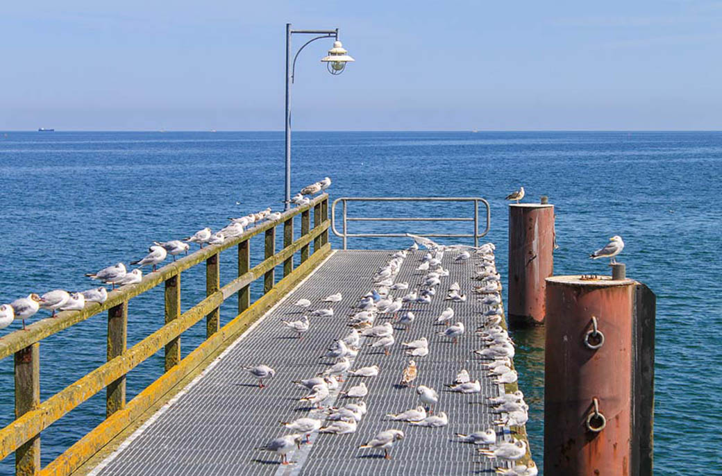 Wann kommt das nächste Schiff? Seebrückenanleger im Ostseebad Göhren.