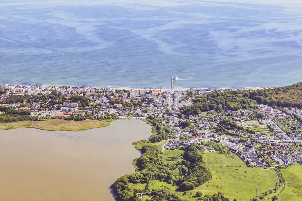 Luftaufnahme von Binz Mitte bis Ost mit dem Rand der Granitz.