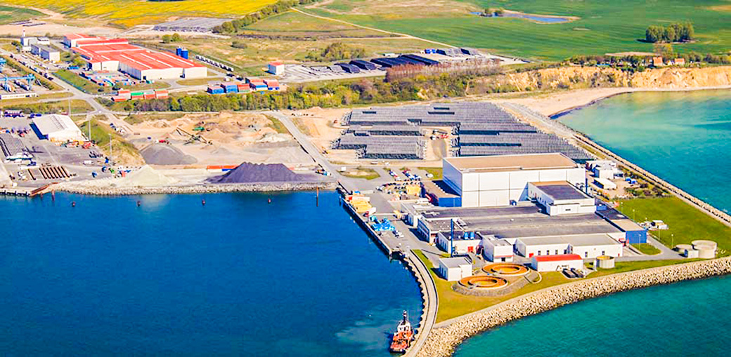 Die Fischfabrik am Molenfuß der Außenmole in Mukran.