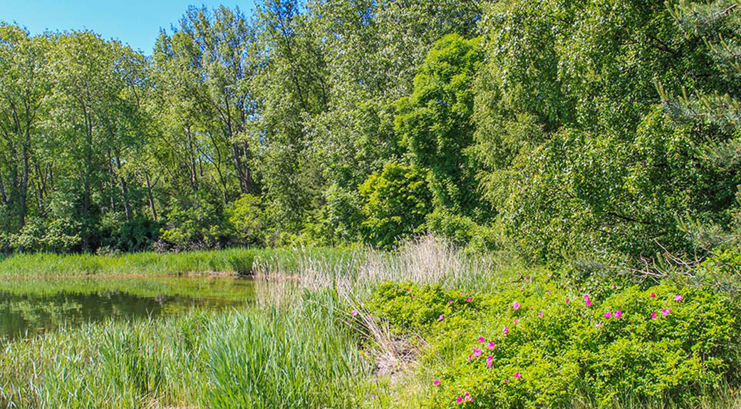 Die schmale Heide, Nehrung zwischen Prora und Mukran, Ostsee und Kleinem Jasmunder Bodden, mit den Feuersteinfeldern.