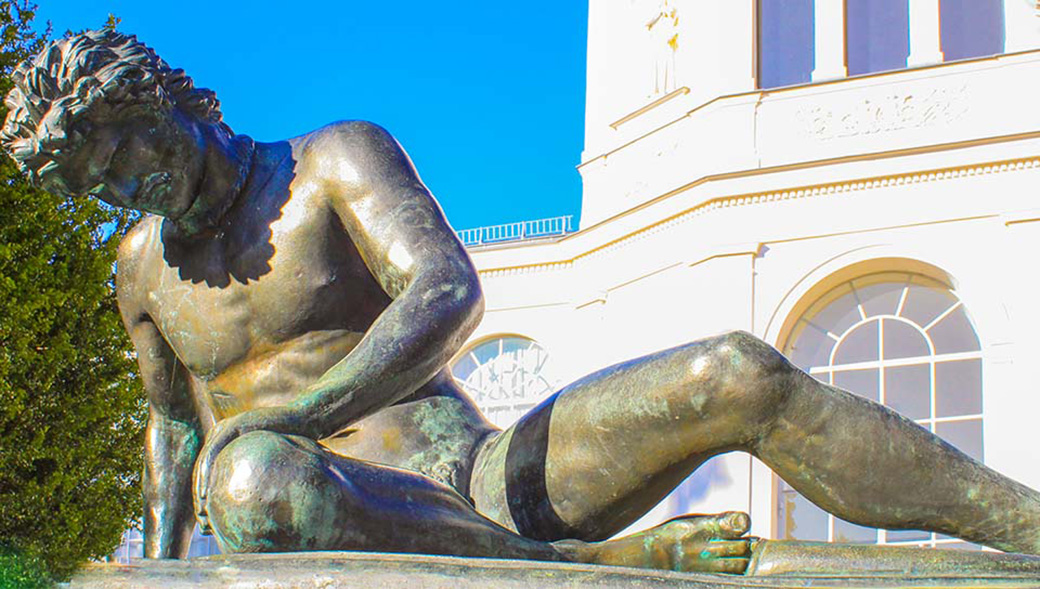 Bronce-Statue vor der Orangerie im Putbuser Park.