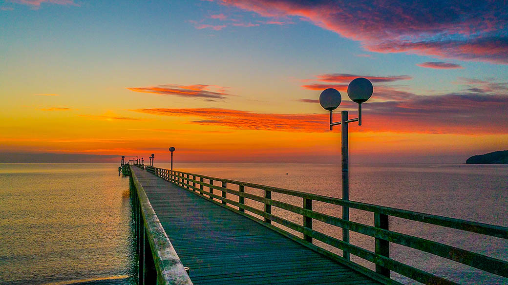 Sonnenaufgang an der Seebrücke im Ostseebad Binz.