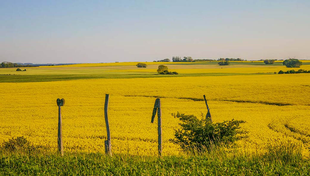 Blick von den Zickerschen Bergen auf Gager und das tief zerklüftete Mönchgut.
