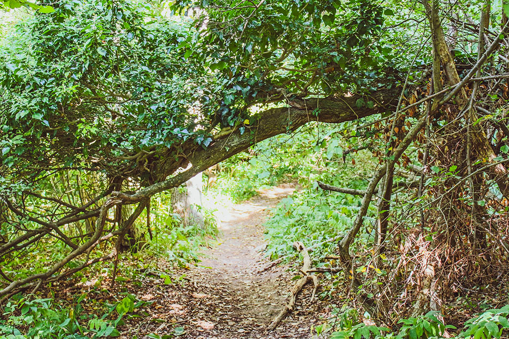 Die Schmachterseestraße führt, als Verlängerung der Hauptstraße, direkt bis an den Schmachter See. Ostseebad Binz.