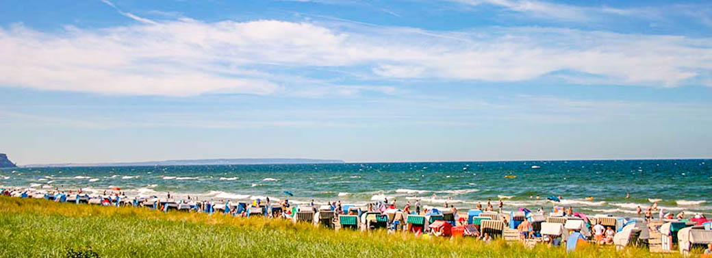 Sommerwetter am Badestrand im Ostseebad Göhren.