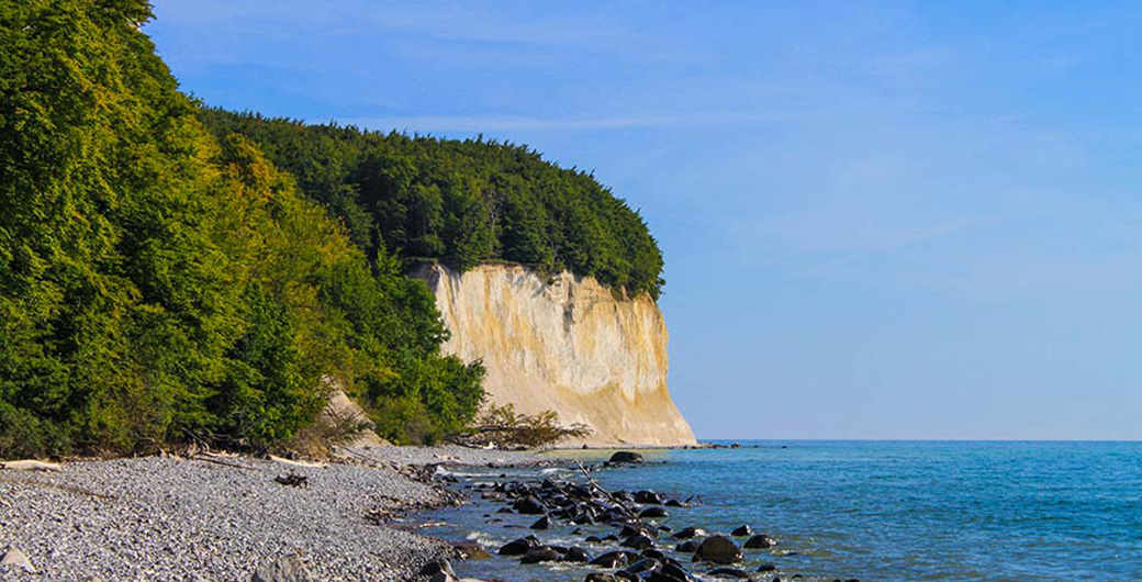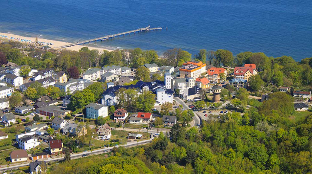 Die Altstadt von Sassnitz, umgeben von den Wäldern des Nationalparks Jasmund.