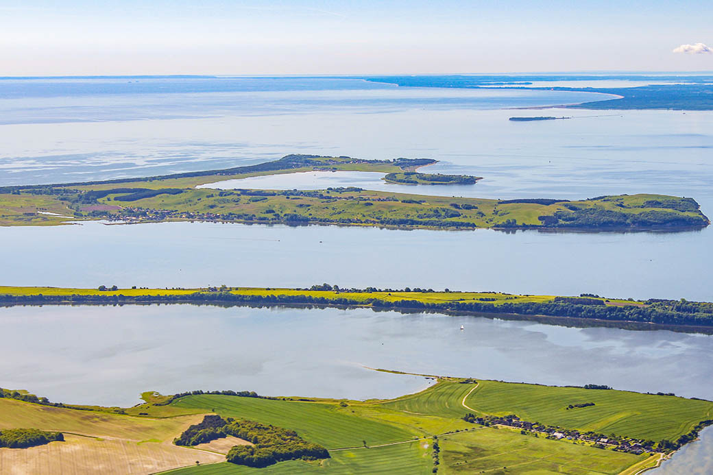 Blick vom Jagdschloss über Neu Reddevitz, Reddevitzer Höft, Groß- und Klein Zicker, den Ruden bis nach Usedom.