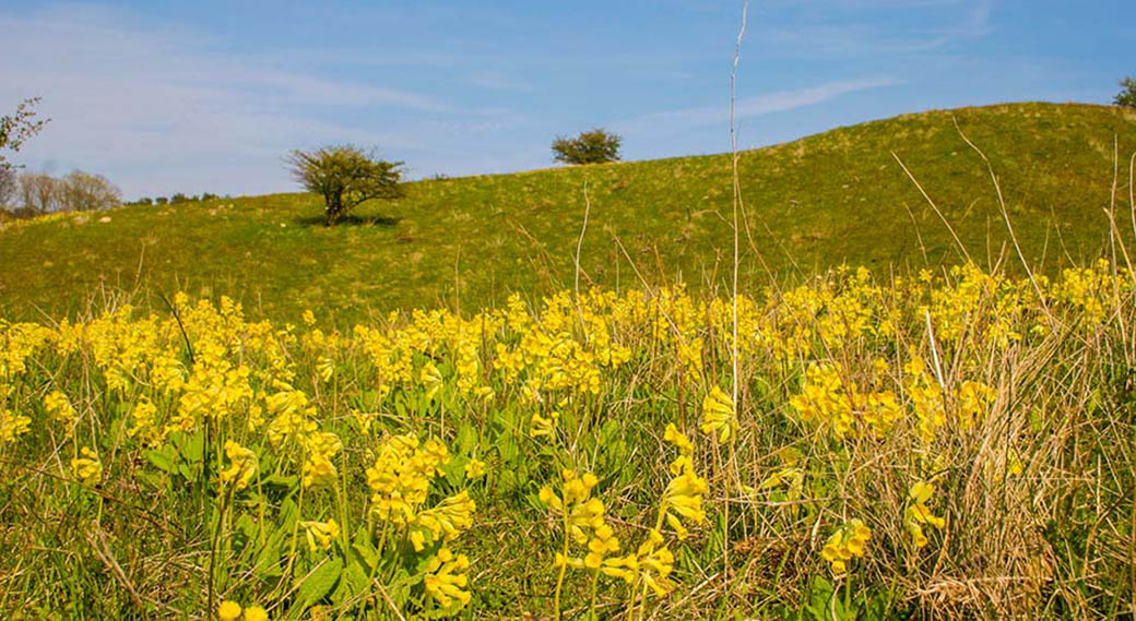 Frühlingswiese mit Himmelschlüsselchen auf Gross Zicker.