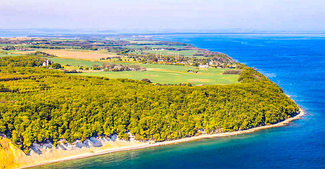 Luftaufnahme Kreideküste mit Schloss Ranzow und Lohme.
