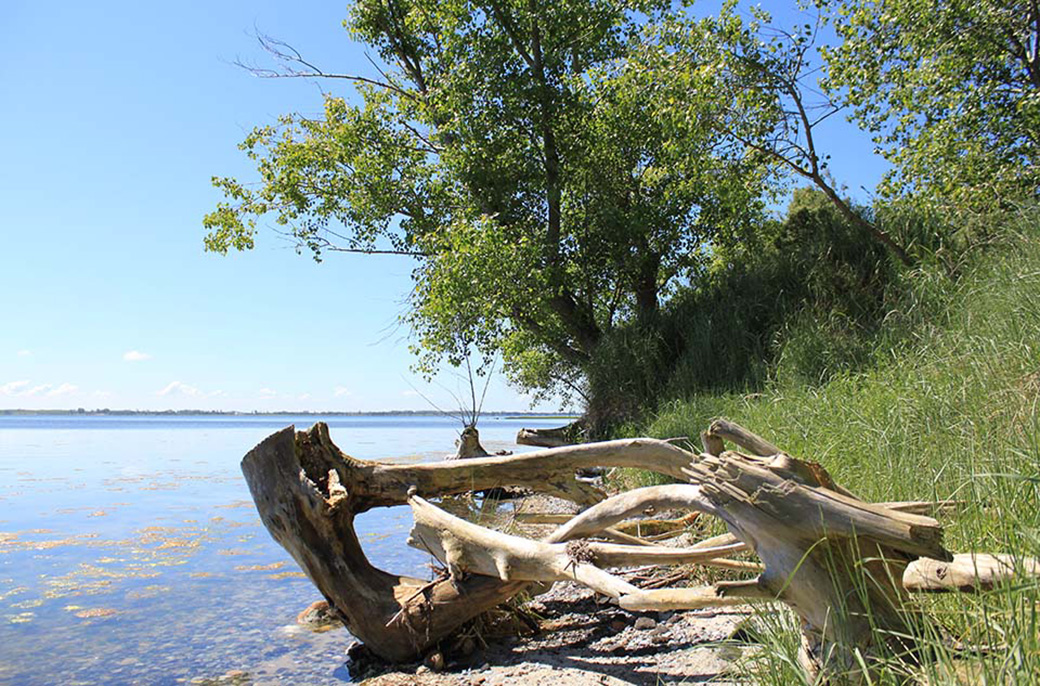 Baden am Naturstrand des Großen Jasmunder Boddens bei Lietzow.