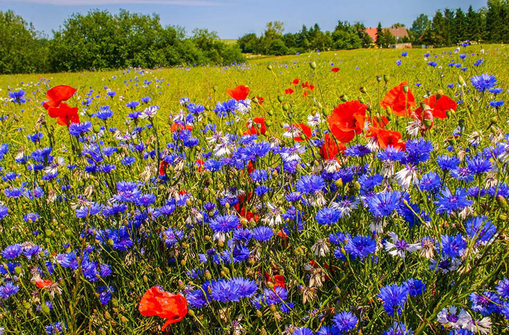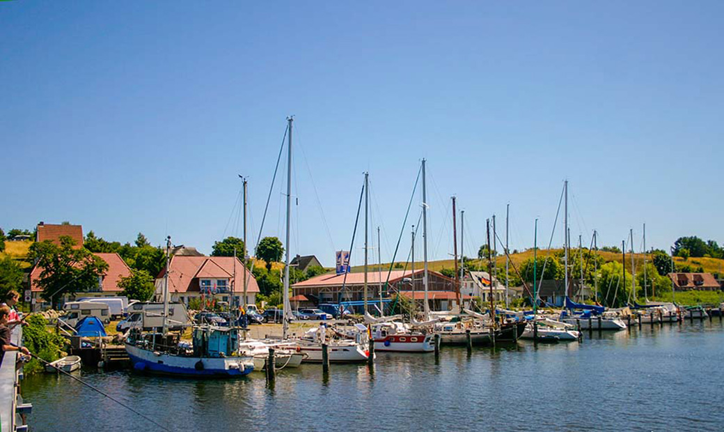 Die Bucht der Insel Vilm mit den Häusern der Naturschutz-Akademie.