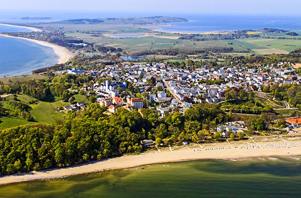 Rundflug: Das Ostseebad Göhren liegt direkt an der Landzunge des Nordperds, zwischen Nordstrand Ostsee und Südstrand Greifswalder Bodden.