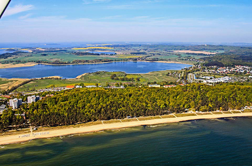 Rundflug: Cliff Hotel mit dem Südstrand von Sellin.