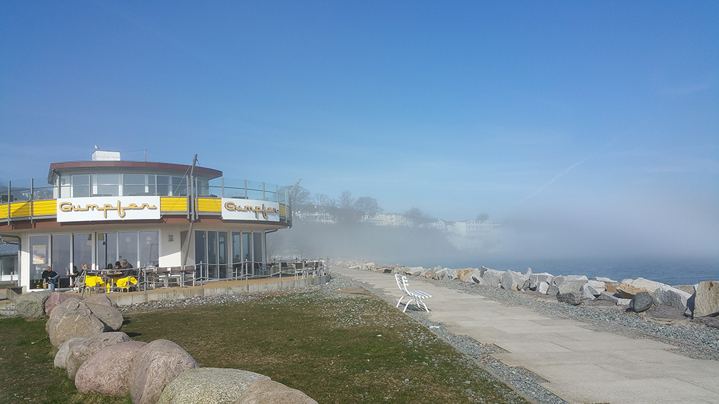 Der Molenfuß im aufkommenden Seenebel.
